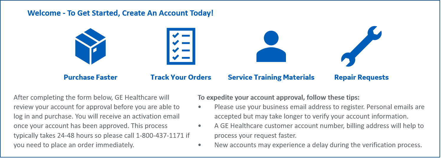 It has come to our notice that you have been purchasing with GE HealthCare. Based on your purchasing history, we have pre-filled few details. Please provide the remaining details and proceed with your registration.